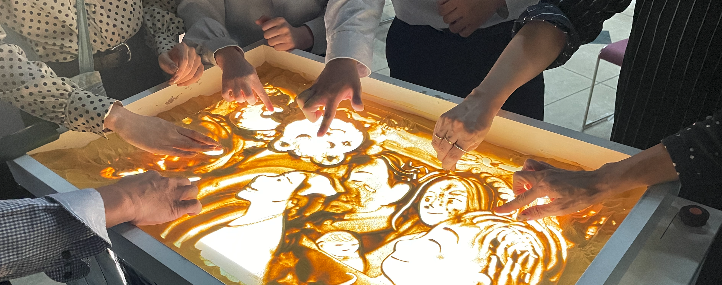 サンドアートに触れる大人。