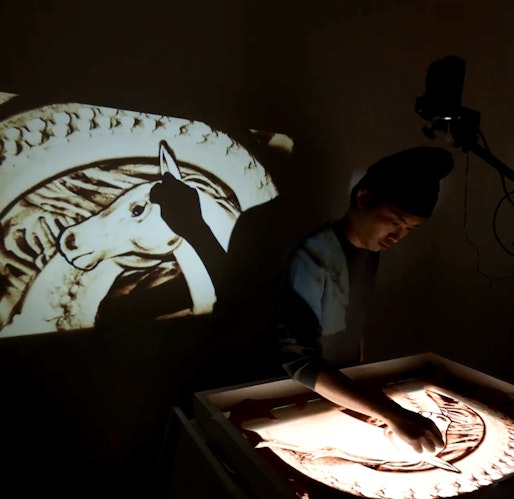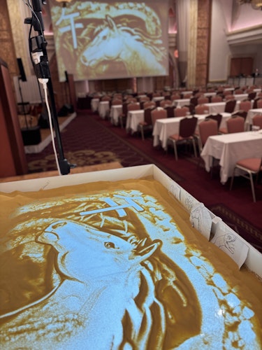 さらにその蛇を馬へと変化させるサンドアートパフォーマンス。