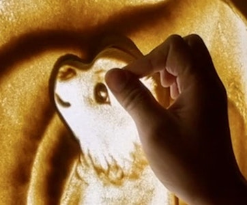 手や指や腕を用いて砂絵を描いていき、逆光に照らされた砂の陰影の濃淡を表現するアートは独特の立体感や粒子感が魅力となっています。砂絵を描きあげていく様子をライブ撮影して、1つのストーリーを作り上げてから壊すまでをパフォーマンスとして見せていきます。