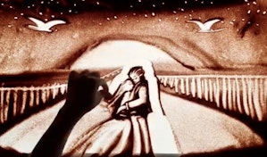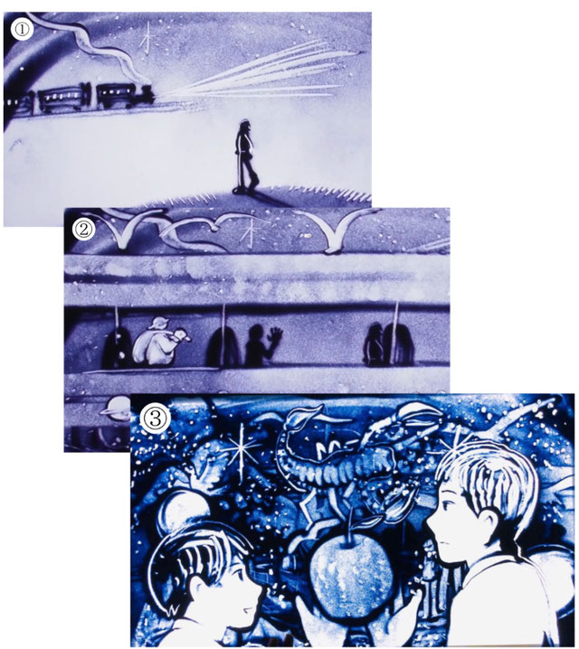 宮沢賢治さんの名作をサンドアートに。命の美しさ、儚さを青砂で神秘的に表現します。