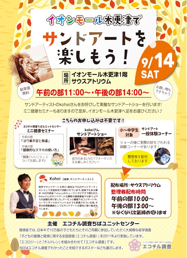 「Koheiのサンドアート」では 多くの年代の方のご覧いただけるよう地域と連携した文化芸術事業にも力を入れています。